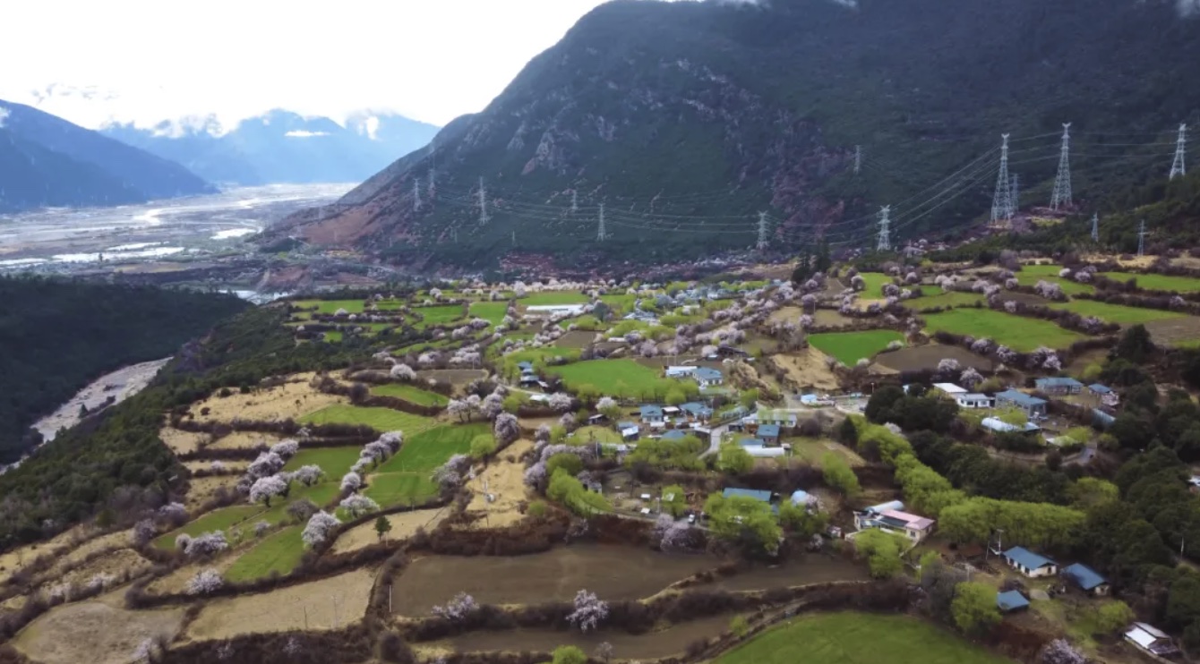 ▲嘎拉村春季桃花盛开时的景色。