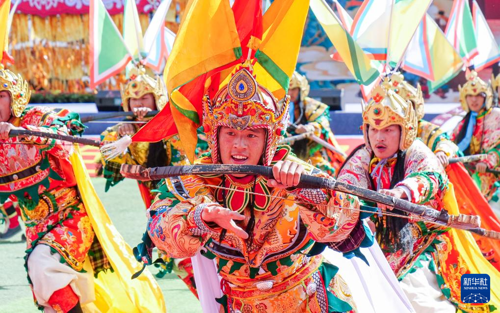 这是9月15日拍摄的开幕式上的格萨尔王舞蹈表演。新华社记者 格桑朗杰 摄