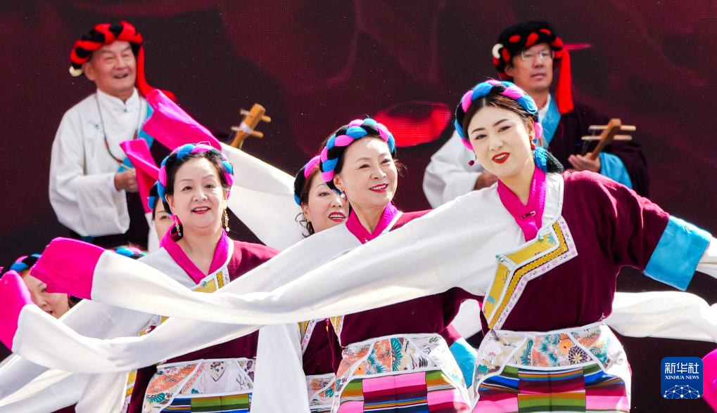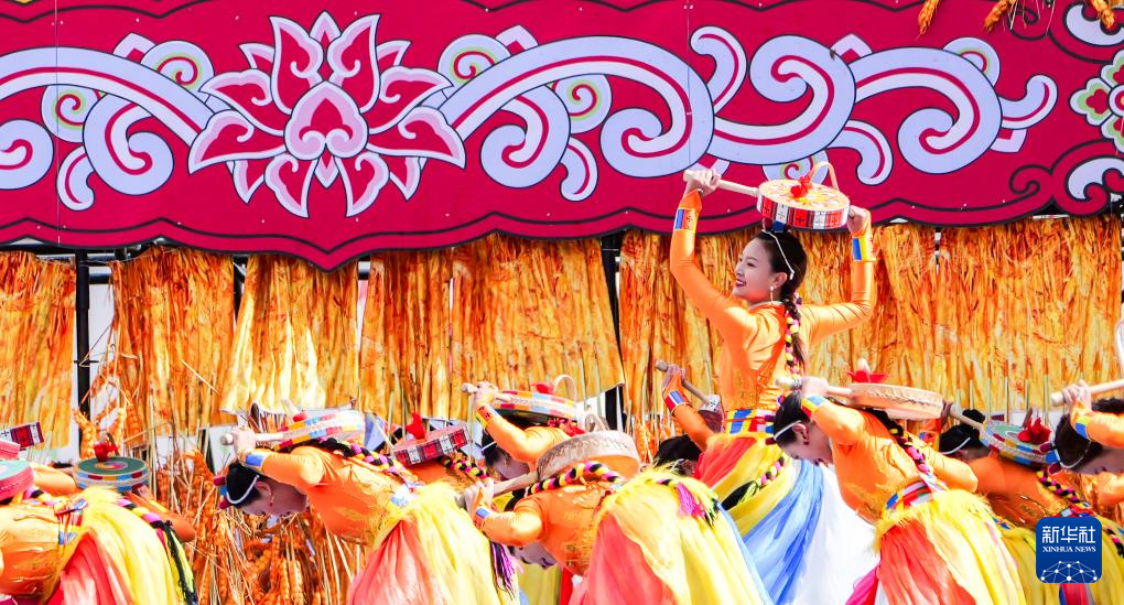 9月15日,演员在开幕式上表演以糌粑为主题的女子群舞。新华社记者 党黎 摄