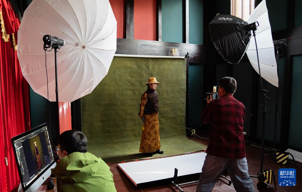班珠丹塔身着藏装进行棚拍(9月9日摄)。新华社记者 丁增尼达 摄