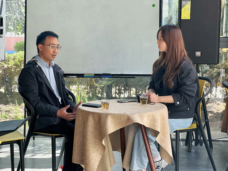 西藏藏缘青稞科技有限公司副总经理阳昌军(左)在介绍公司运作情况。(受访者供图)