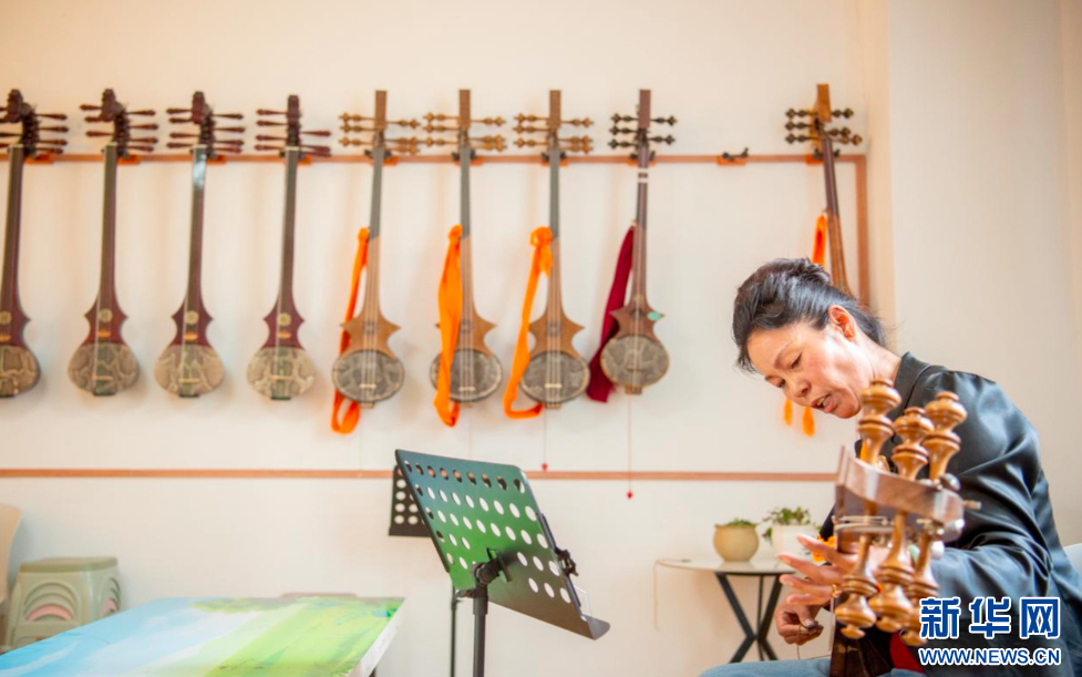 10月13日,八一社区居民次旦卓玛在老年活动中心学习扎念琴。新华网 旦增努布 摄