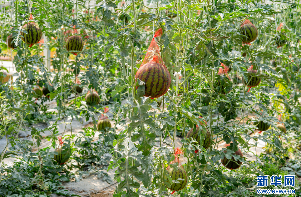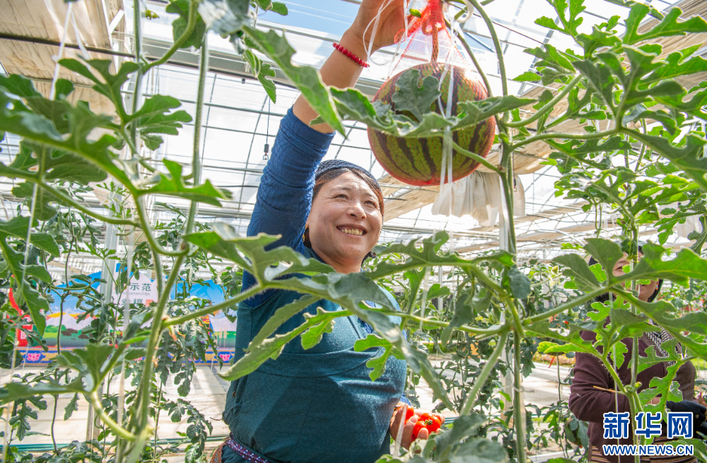 10月15日拍摄的墨竹工卡县现代农业示范园内种植的西瓜。新华网 旦增努布 摄