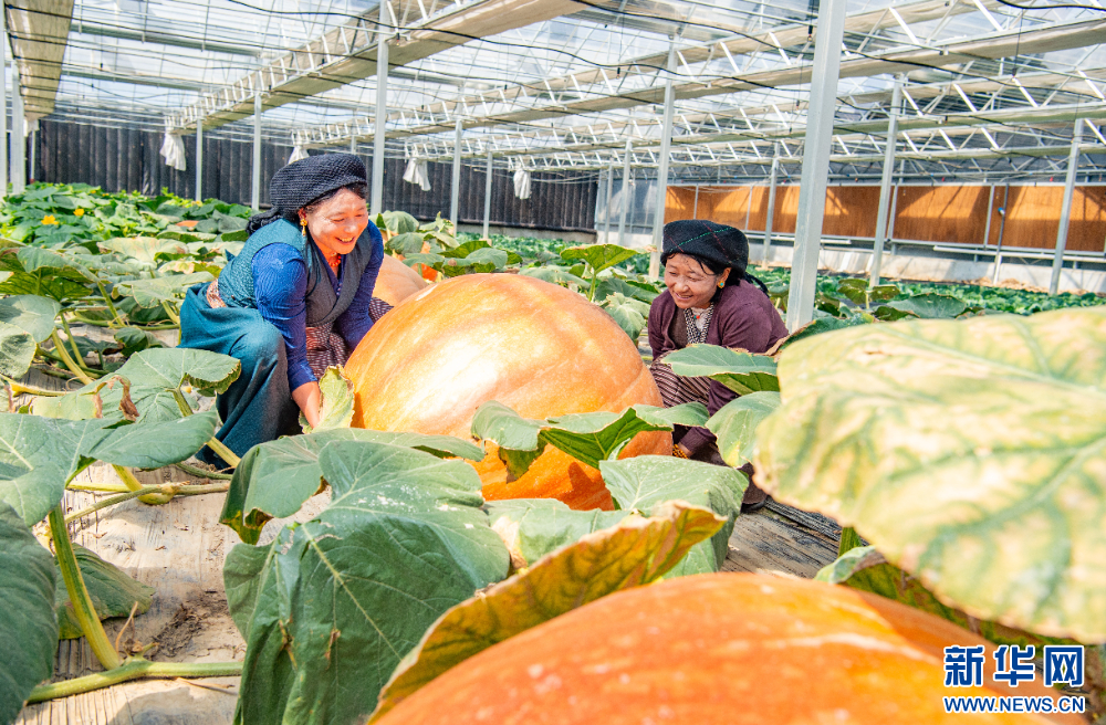 10月15日拍摄的墨竹工卡县现代农业示范园的太空南瓜特色展示区。新华网 旦增努布 摄