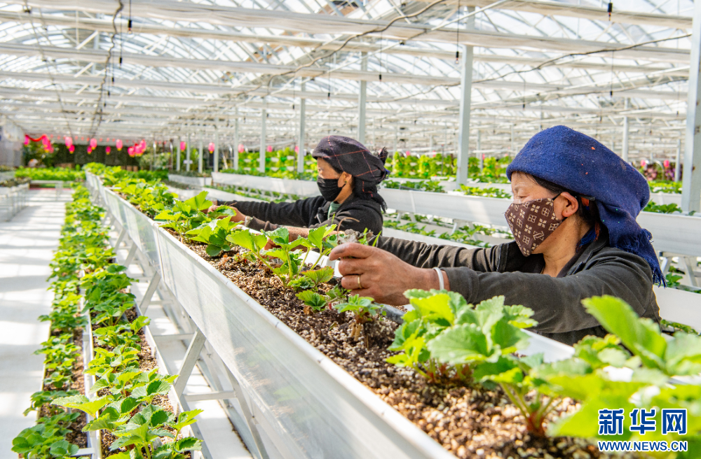 10月15日,群众在墨竹工卡县现代农业示范园内工作。新华网 旦增努布 摄