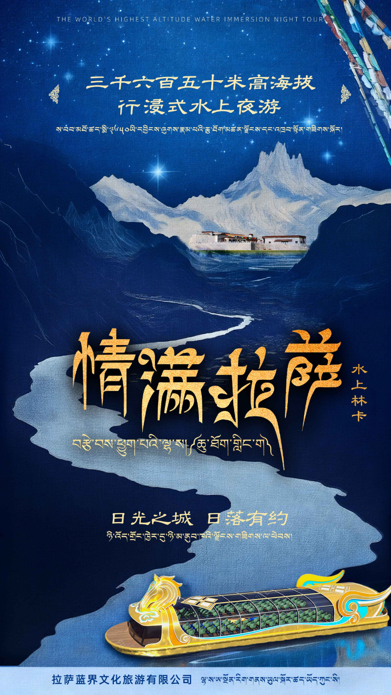 1. 情满拉萨(水上林卡):依托吉曲河资源,改造游船码头,融合科技光影与民俗演艺,打造全球海拔最高的行进式水上夜游项目。水上林卡通过夜游拉萨河,让市民游客深度体验沿河风光,以全新的视角感受拉萨的迷人风貌与人文故事,给游客带来无与伦比的观光享受。灯光设计则以“山水之间光影画卷”为主题,包括“荣、奇、和、文、秀、源”六大组团,充分运用拉萨河的河水、岸线、远山、楼宇,呈现集视觉、听觉、互动于一体的夜间文化体验空间,形成全域旅游,助力拉萨夜间经济发展。