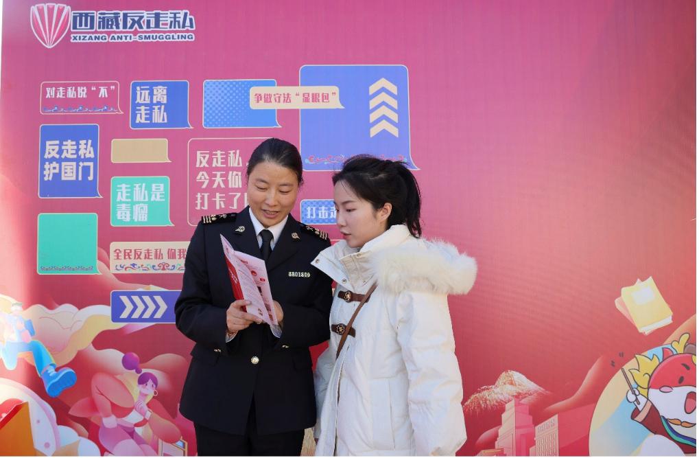 在联合普法宣传区,拉萨海关及拉萨海关缉私局关警员以生动直观的方式为学生普及反走私法律法规,鼓励引导学生自觉抵制、积极举报走私违法犯罪,不断提升打击走私综合治理工作水平。