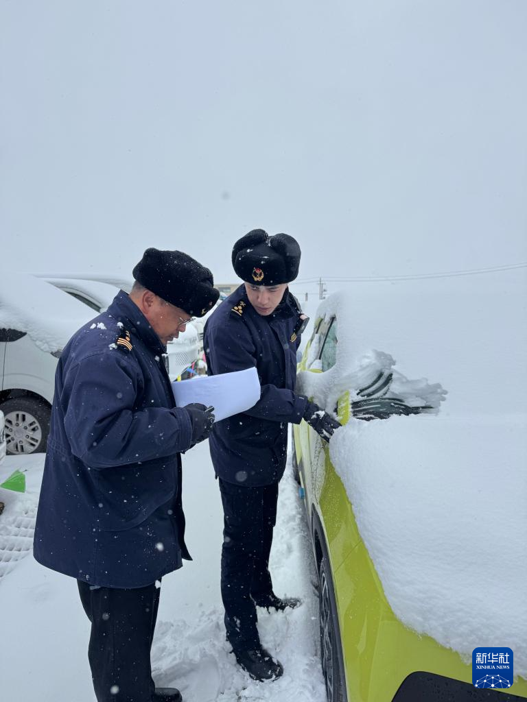 10月28日,日喀则海关关员在里孜口岸查验出口新能源汽车。(拉萨海关供图)