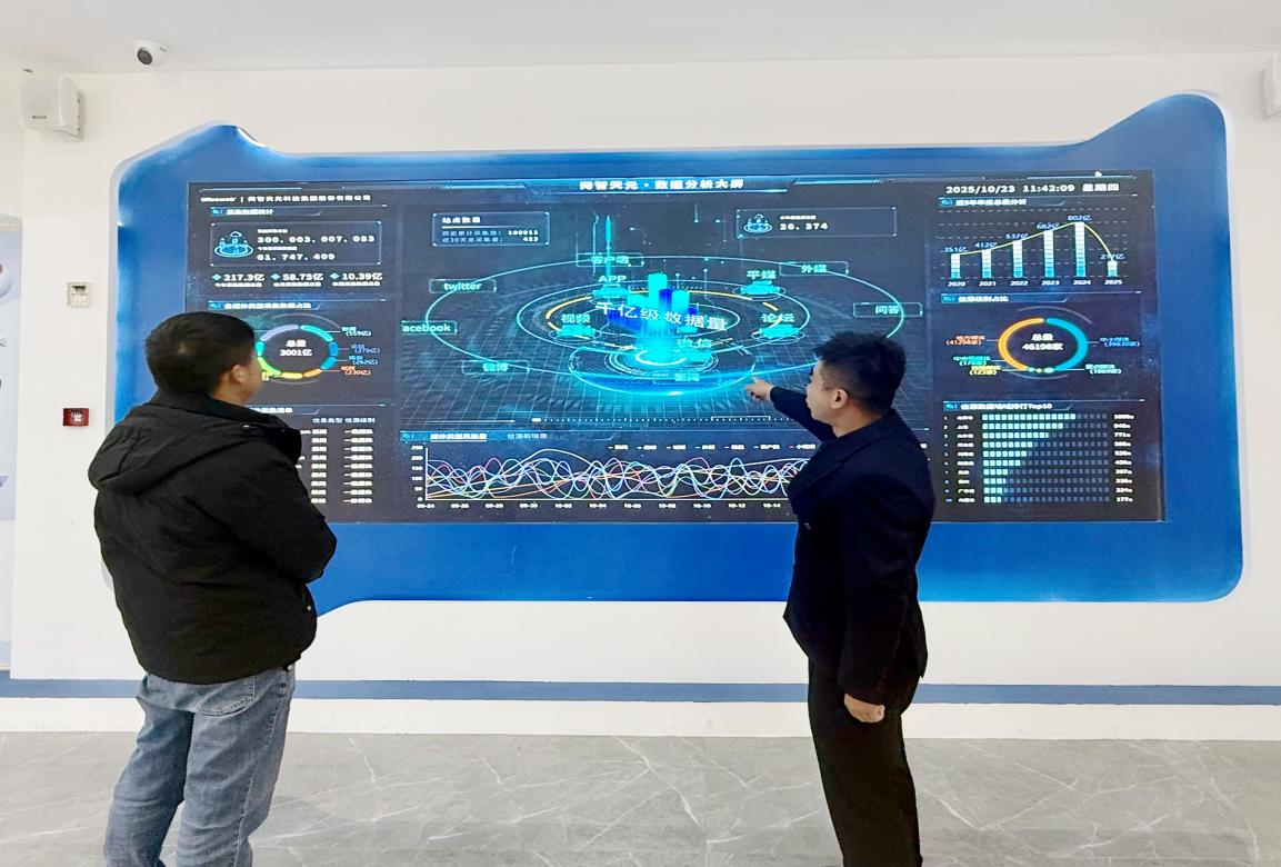 图为西藏网智天元科技集团股份有限公司工作人员正在介绍企业实时数据分析屏。(受访者供图)