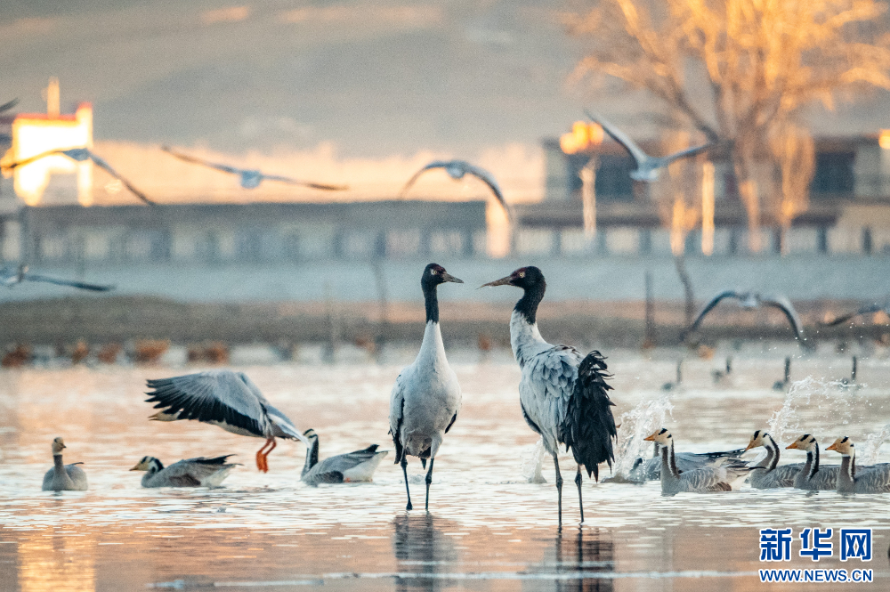 10月下旬开始,西藏拉萨河谷迎来大批越冬候鸟。黑颈鹤、斑头雁、赤麻鸭等候鸟们主要栖息在海拔2500米至5000米的高原、草甸、沼泽地带,在拉萨河谷,它们将待到来年三四月份。