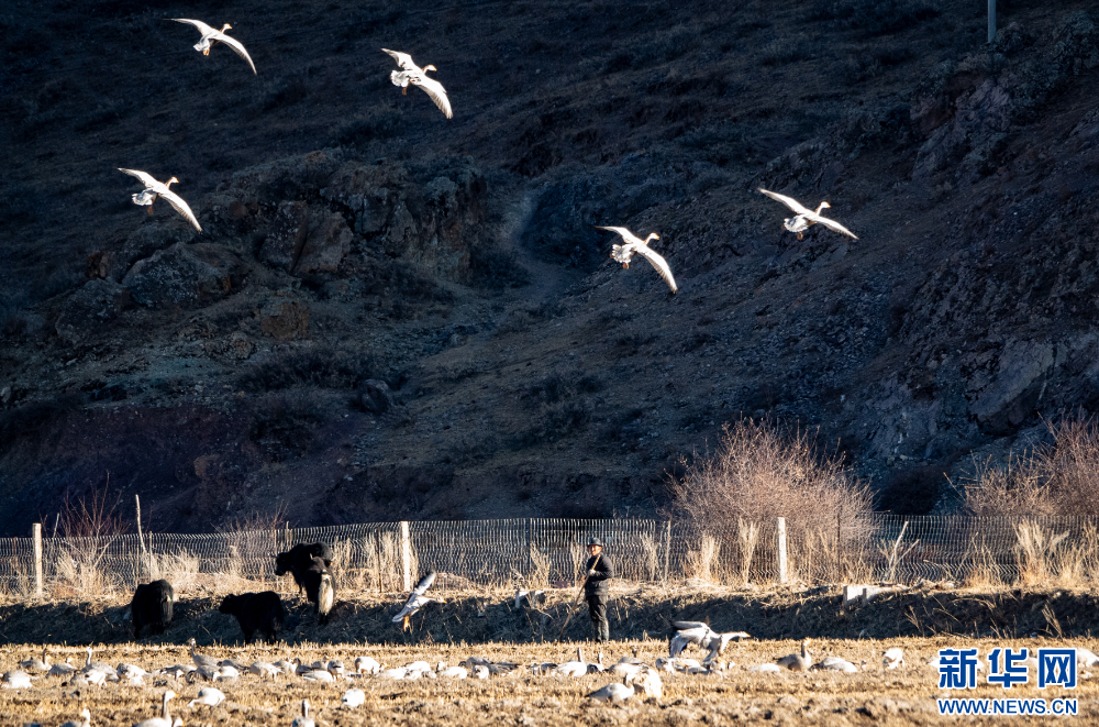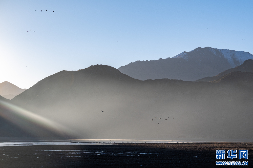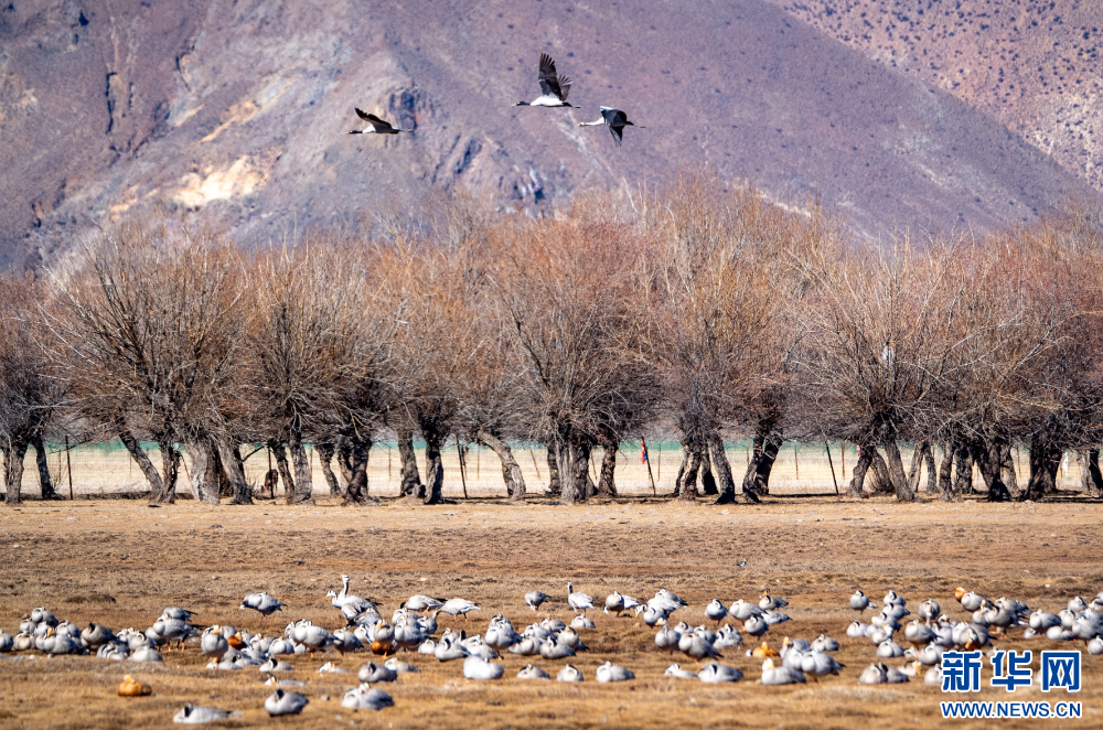 这是11月26日在西藏拉萨市林周县境内拍摄的候鸟。新华网 旦增努布 摄