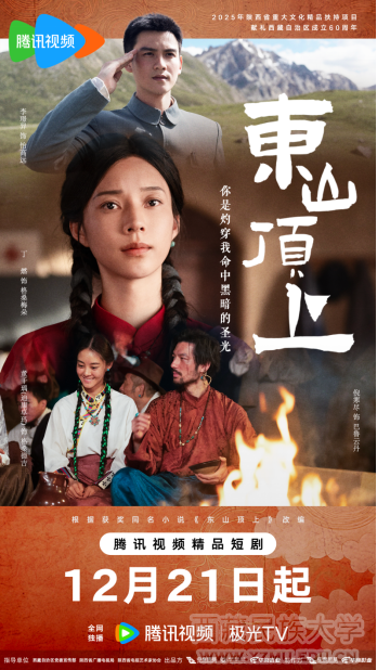 视听盛宴即将开启。在短剧市场竞争激烈的当下,作为学校2025年文化建设重头戏,《东山顶上》以敬畏历史、深情创作、精良制作为内核,不仅还原了西藏发展的历史脉络,更以青春的笔触和真挚的情感打动人心。12月21日起,锁定腾讯视频,共同见证这段关于生命韧性、独立觉醒与时代变迁的动人诗篇。