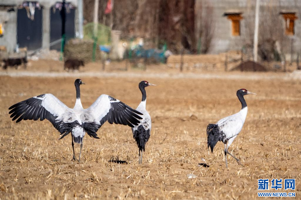 12月18日,在西藏日喀则市南木林县境内拍摄的黑颈鹤。新华网 旦增努布 摄