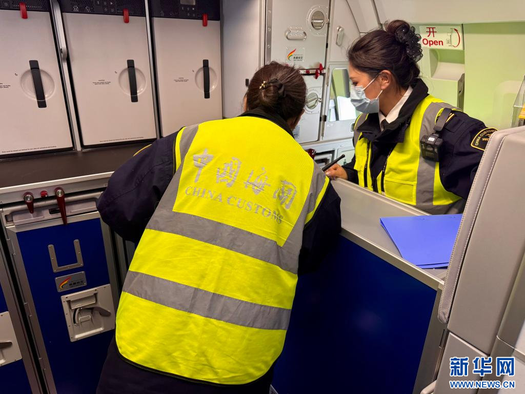 12月24日,拉萨海关关员对进口民航客机进行查验监管。(拉萨海关供图)