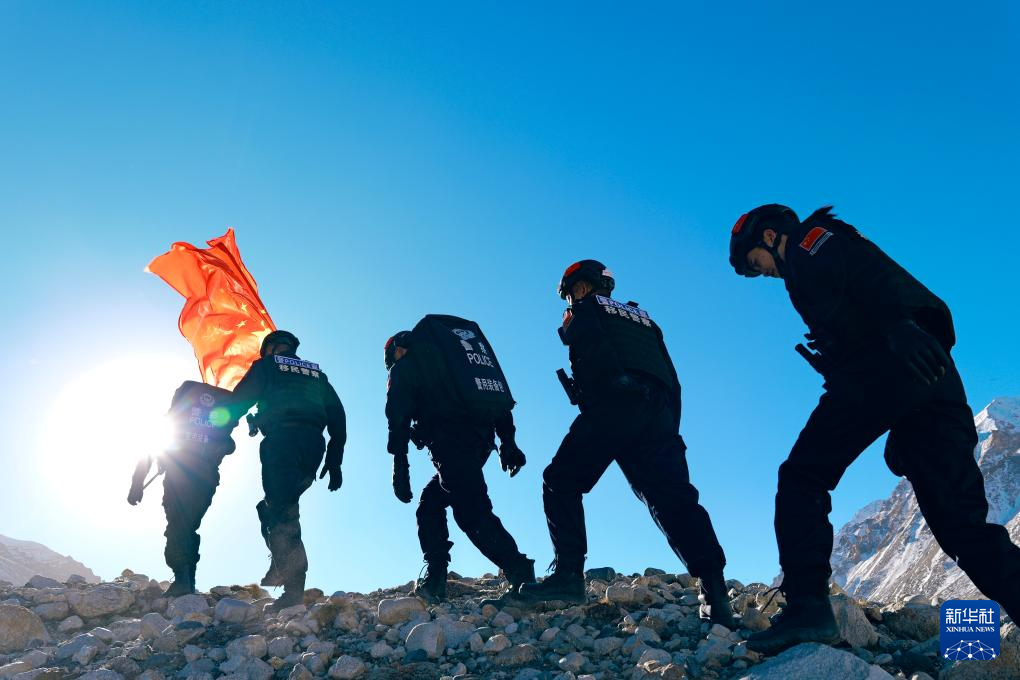 12月24日,深冬的珠峰下雪山连绵、山道蜿蜒,珠峰边境派出所的次里品楚、刘建宏、苟禹、于蜜珍和班馨月5名新警在同事景浩的带领下迎着寒风前行。这是他们首次深入珠峰核心区执行巡逻任务。