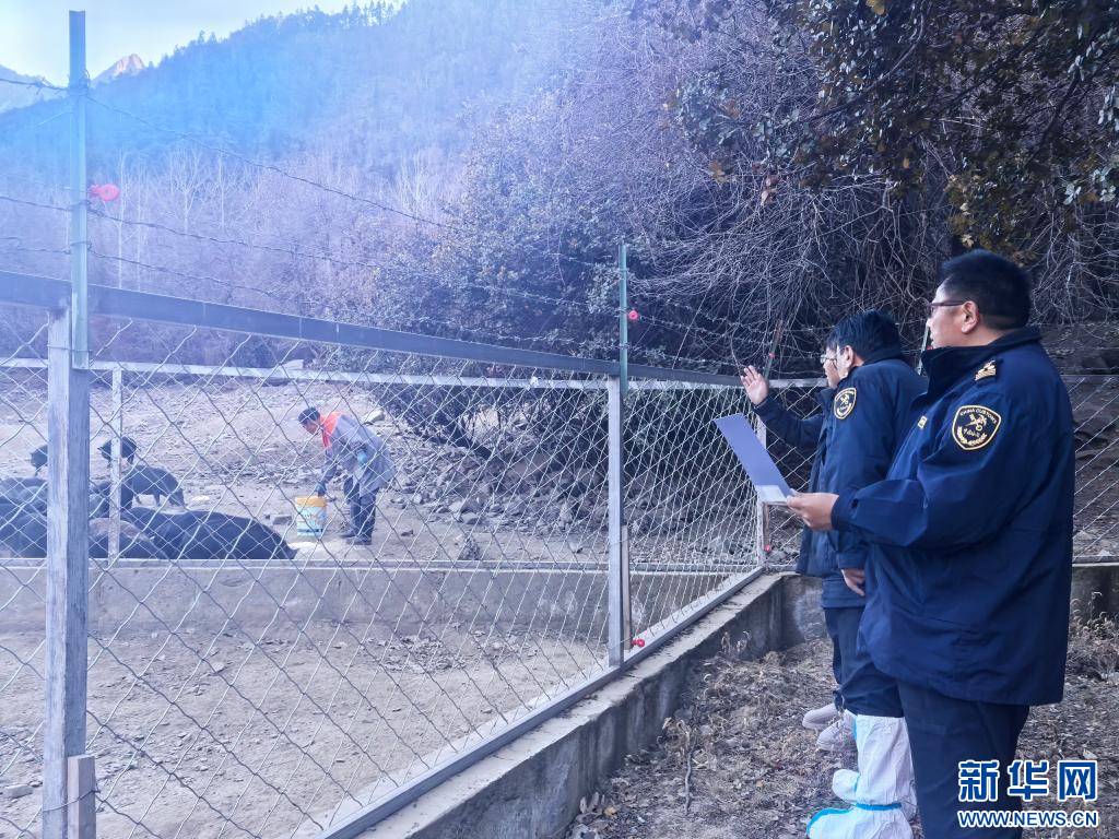 12月15日,拉萨海关所属林芝海关关员对藏香猪养殖场进行现场考核。(拉萨海关供图)
