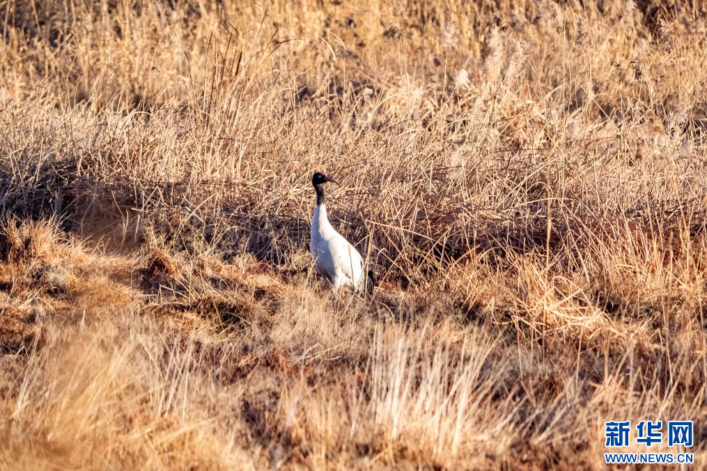 1月10日,在拉萨市拉鲁湿地拍摄的黑颈鹤。新华网 旦增努布 摄